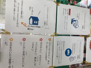 利用者さんにもたくさんの自粛をお願いしている今、出来る限り理解してもらい、この時期を一緒に乗り越えていこうという気持ちを込めてつくってくれました。