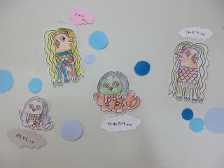 今話題の「アマビエ」の塗り絵を希望者を募ってやりました~。このたくさんの妖怪アマビエで、コロナウイルスをやっつけるぞ~!!