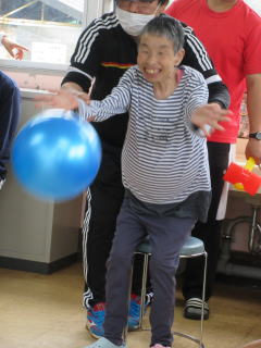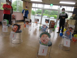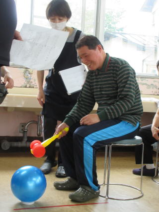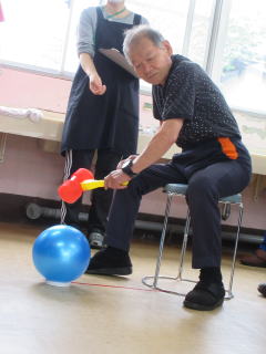 プレイルームで、職員お手製の簡単ゲートボール大会をしました。