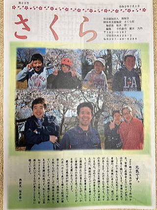 表紙は定番の桜の木の下のショット!みんないい笑顔をしています。その中でも激戦を勝ち抜いた利用者さんが表紙を飾りました~。