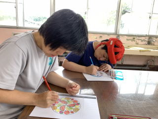 任務その1。プリントアウトした絵に装飾。意外とみんなノリノリです♪
