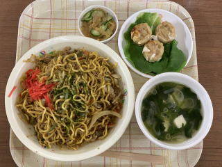 あと、中華クラゲにしゅうまい、野菜スープ。