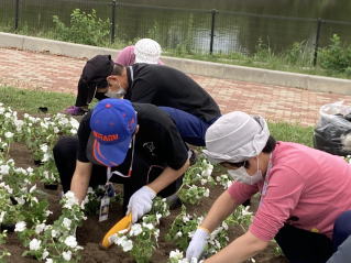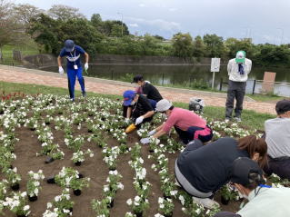決められた場所に穴を掘り、そこにお花の苗を植えていくという単純な作業でしたが、さすが選抜メンバー。黙々と作業を行い、予定されていた作業時間よりもだいぶ早めに作業終了!!さすがです♪
